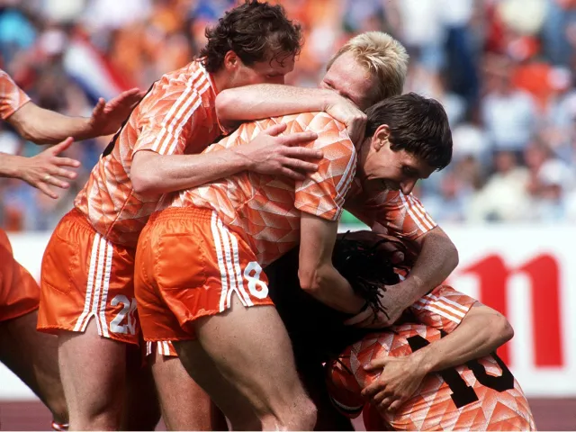 It took all of 32 minutes for captain Ruud Gullit to open the scoring with a bullet header, but Marco van Basten would make headlines with one of the most iconic goals in Euros history, as the striker met Arnold Muhren's cross at the back post and unleashed a thunderous volley over the head of Rinat Dasayev from a tight angle.