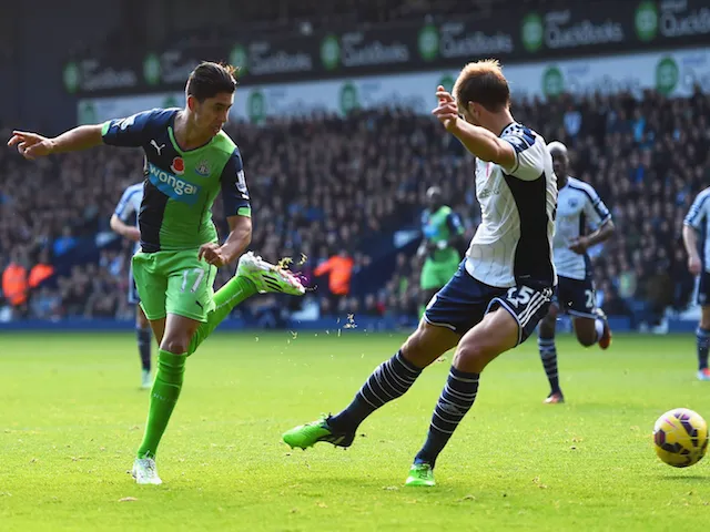Saido Berahino was lucky to escape a booking after a mis-timed tackle on Fabricio Coloccini, and it was Sammy Ameobi who had the Magpies' best chance of the half prior to the goal.