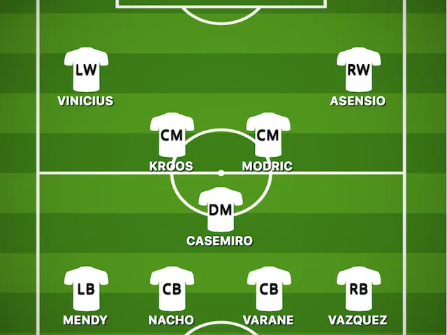 Nacho, Raphael Varane and Ferland Mendy will all keep their spots in the starting XI, while there are also unlikely to be any changes in the final third of the field, with Vinicius Junior and Marco Asensio set to retain their positions either side of central striker Karim Benzema.