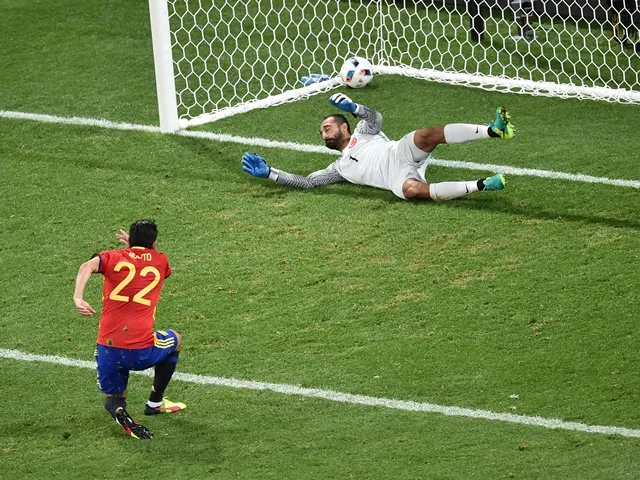 In the 11th minute, Spain again came close when Jordi Alba delivered a low cross towards the near post, but Turkish full-back Hakan Balta managed to turn against his own post under pressure from Morata. Gerard Pique met the resulting corner, but his header hit the ground and bounced over the target.