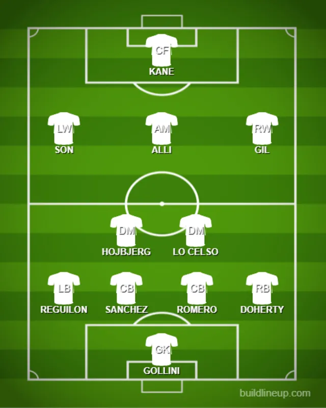 Forwards: Lucas Moura, Steven Bergwijn, Bryan Gil, Jack Clarke, Harry Kane, Son Heung-min