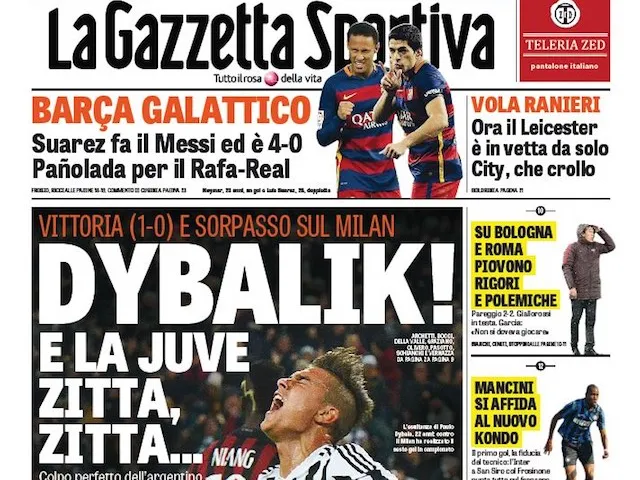 'Dybalik!': The Italian 'paper hails the "perfect" strike from Argentine Paulo Dybala that helped Juve to a 1-0 triumph over rivals Milan in the Serie A.