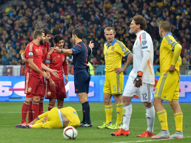 Taras Stepanenko and Serhiy Rybalka were the next two players to come close to breaching De Gea's net, but the Manchester United keeper remained strong to see Spain successfully over the line.