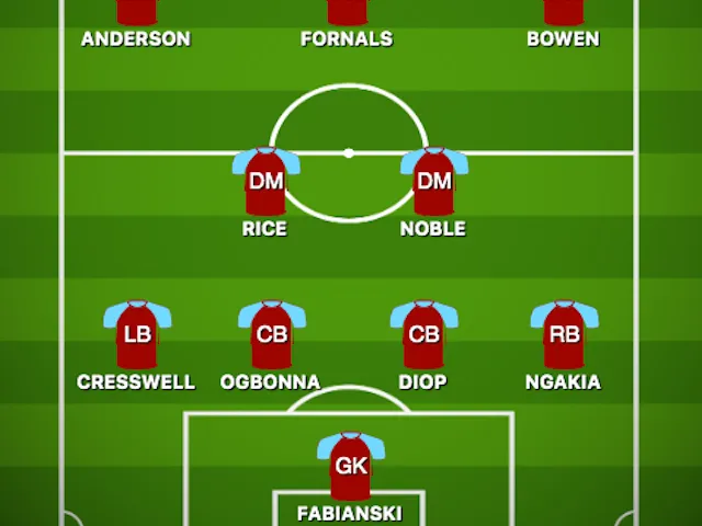 The injury to January arrival Tomas Soucek means that Pablo Fornals is likely to start again with Mark Noble in a deeper role alongside Declan Rice.