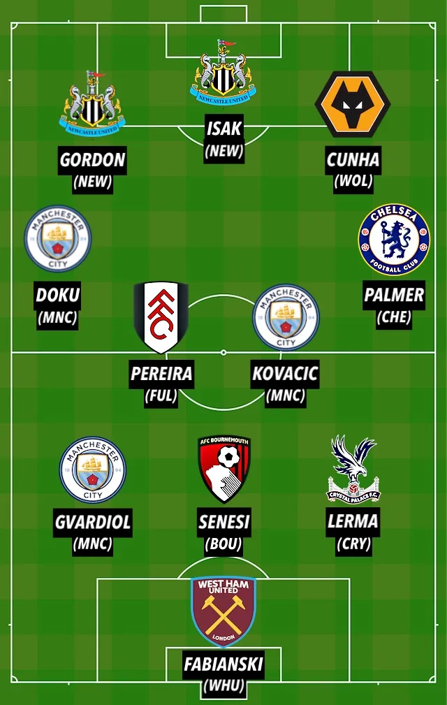 Sports Mole's Premier League Team of the Week (3-4-3): Fabianski; Lerma, Senesi, Gvardiol; Palmer, Kovacic, Pereira, Doku; Cunha, Isak, Gordon