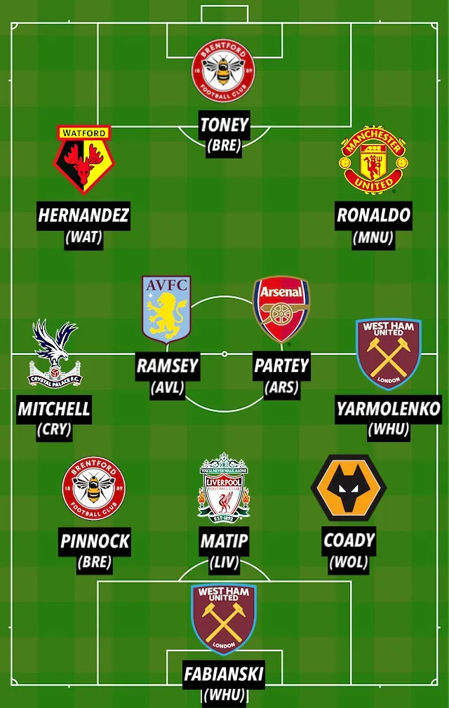 Sports Mole's Premier League Team of the Week (3-4-3): Fabianski; Coady, Matip, Pinnock; Yarmolenko, Partey, Ramsey, Mitchell; Ronaldo, Toney, Hernandez