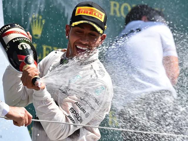The rain got heavier with nine laps remaining, forcing Hamilton and Sebastian Vettel to come in for intermediate tyres, while the rest of the field pitted a lap later, allowing the Ferrari driver to jump up to third, claiming the final spot on the podium.