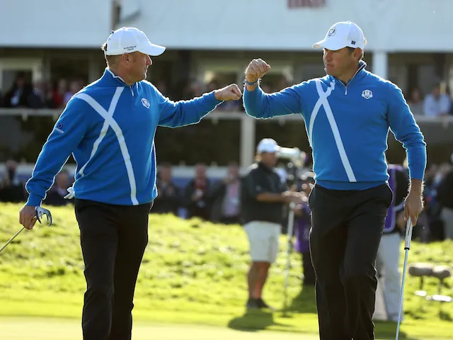 The American pairing got off to the perfect start when Johnson chipped in on the first but Europe responded immediately to get back to level after two holes.