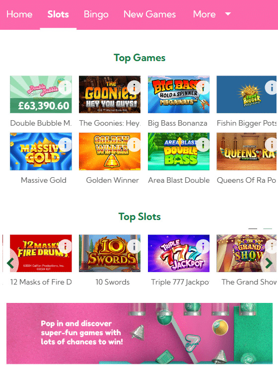 - 🫧 Double Bubble Bingo – Known for its exclusive Double Bubble Slot