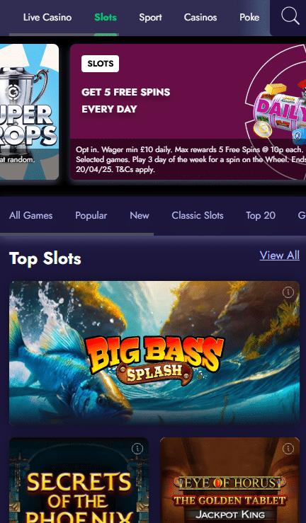 At Gala Spins, slot players can take advantage of many ongoing promotions, including a daily free spin on the Gala Rewards Wheel and free slot tournaments with £10k up for grabs. The slot site has also done a bang-up job on payment methods with a low £5 minimum deposit and no withdrawal limits.