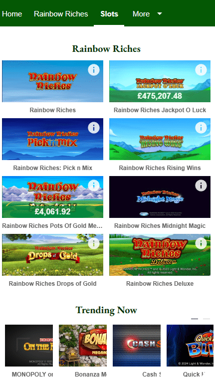 - 🌈 Rainbow Riches Casino – Iconic slot titles with regular promotions