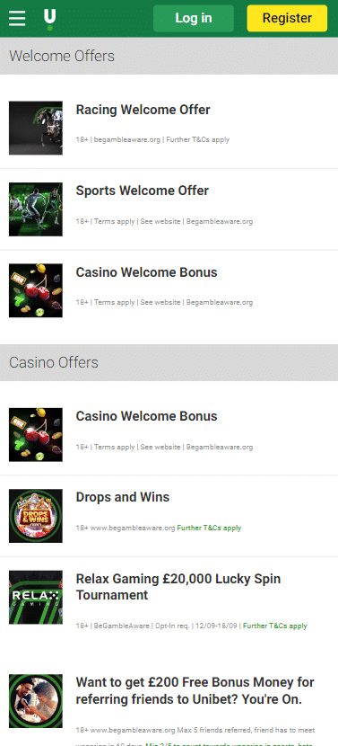 Current Unibet promotions cater to different types of players, though you can only claim one welcome offer from their range of available bonuses. Choose wisely.