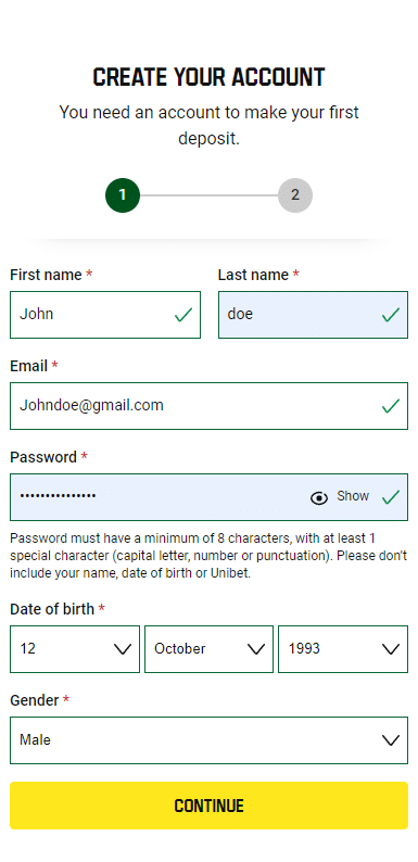 - Go to Unibet.co.uk and click the prominent yellow “Register” button on the homepage