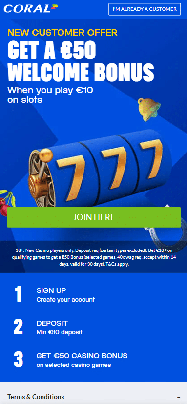 Coral casino welcome bonus: £50 cash bonus on slots & live games