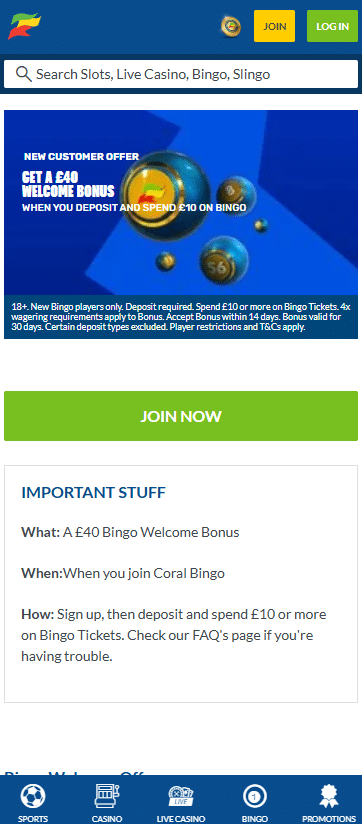 Coral bingo welcome bonus: get £40 in bingo tickets with a £10 deposit
