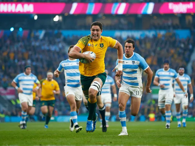 Nicolas Sanchez got Argentina on the board with a penalty down the other end, but Australia were threatening every time they got in Los Pumas' half and they had their second try before the 10-minute mark.