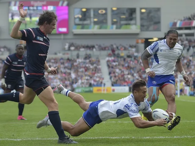 Samoa began their charge for a first Rugby World Cup quarter-final berth in 20 years with victory over USA in Pool B this afternoon.
