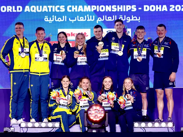 The USA's Fink, Hunter Armstrong, Claire Curzan and Kate Douglass stormed to medley relay glory in a time of 3:40.22, while Australia were nearly three seconds behind in the silver medal spot with 3:43.12.
