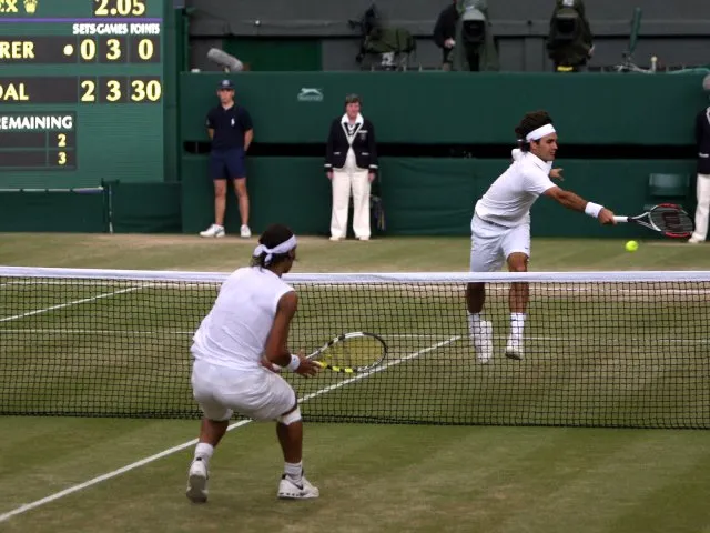 In true British summer style, the start of the clash was delayed by rain for 30 minutes. When they eventually got onto the court, Nadal stunned Federer and the crowd by racing into a 6-4 6-4 lead.